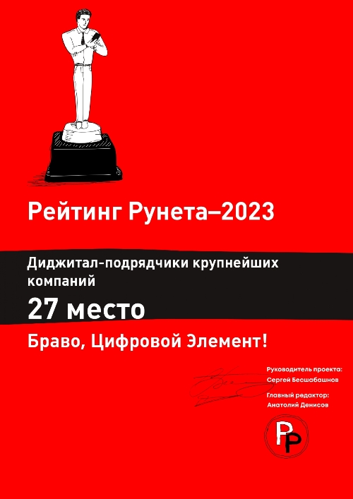 16 мая 2023 подведены итоги одного из самых крупных конкурсов в сфере IT для digital-агентств. Компания «Цифровой Элемент», как и в прошлые годы, оказалась в топе рейтингов и занимает лидирующие позиции во многих номинациях.