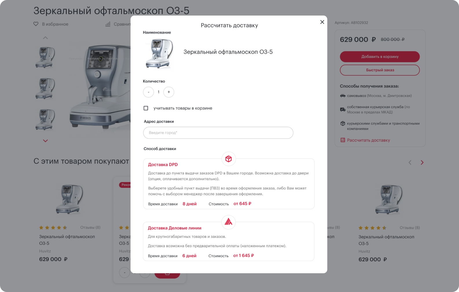 • Сервисы расчета доставки DPD и Деловые линии