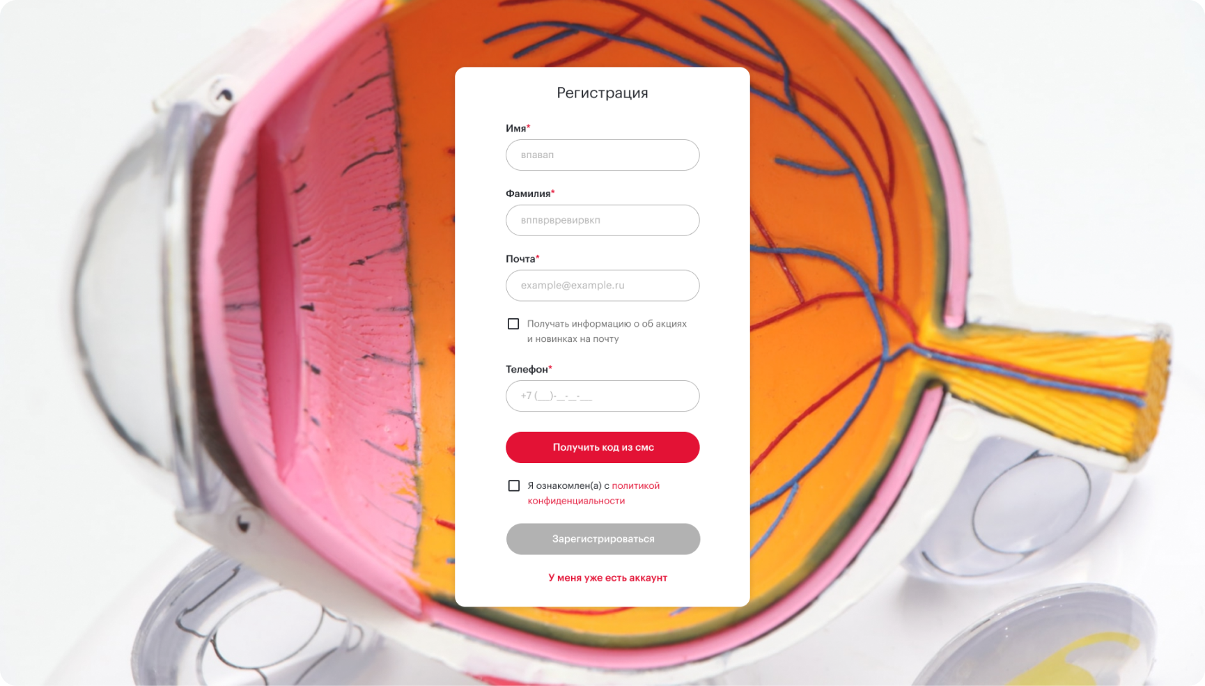 Для регистрации пользователю требуется ввести:
