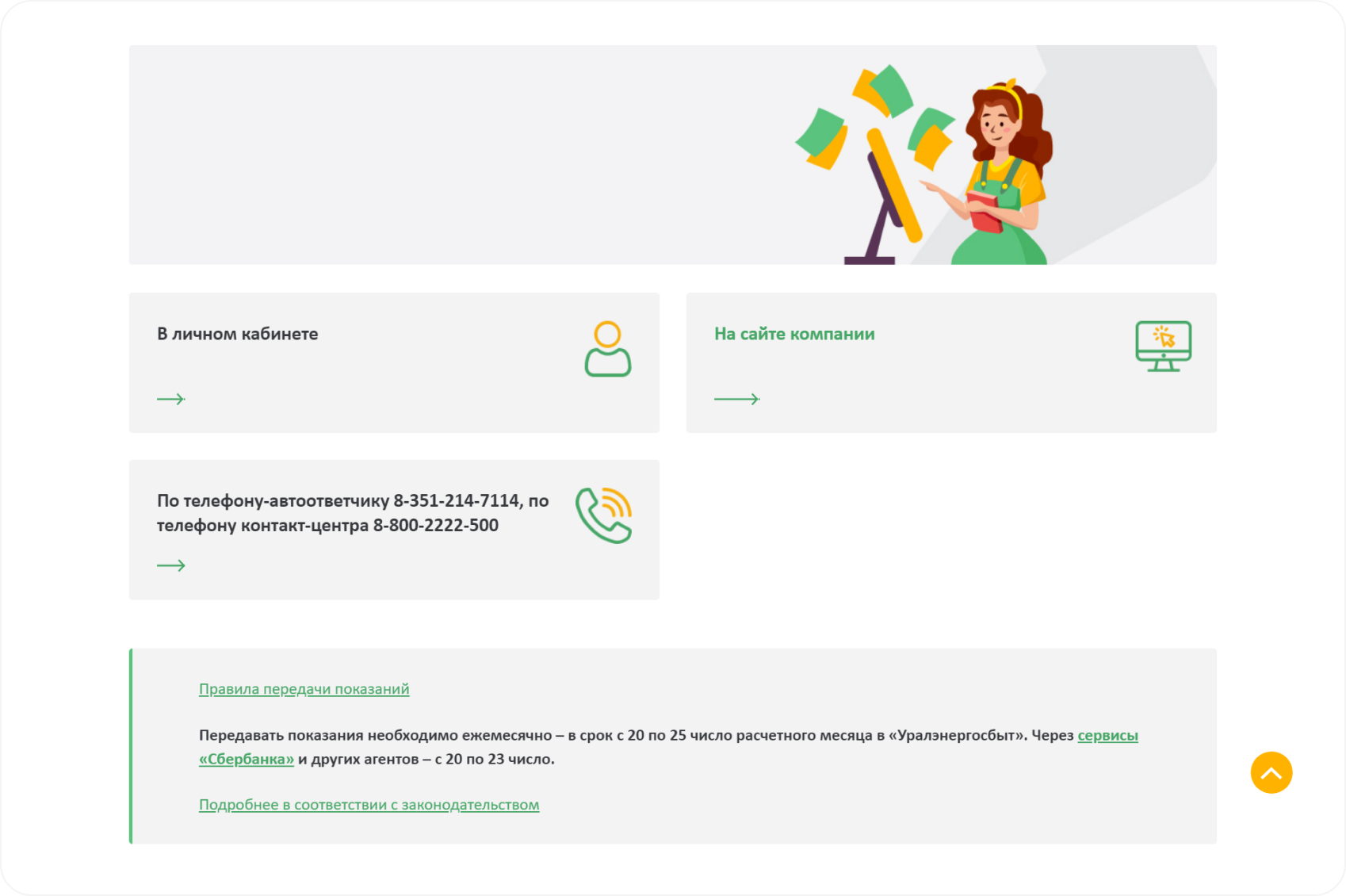 Для бизнеса контакты разделены на Отделение ООО «Уралэнергосбыт» и на Адреса очного обслуживания клиентов.