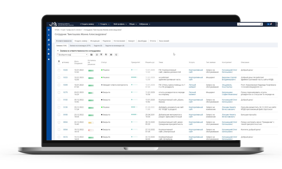 Было организовано несколько категорий запросов: Инцидент, Запрос на изменение и Запрос на обслуживание. По последнему типу мы организовали поддержку для сотрудников Заказчика по вопросам функционирования веб-сайта, личного кабинета, панели администрирования.